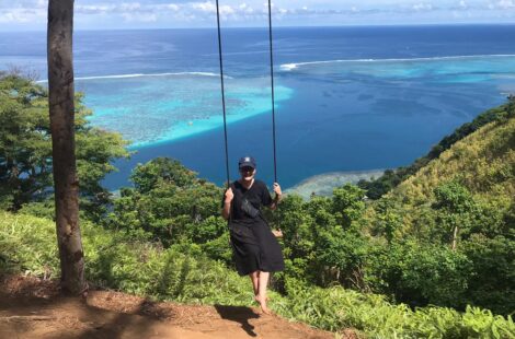 Salome Amacker in Tahiti. Freizeit Podcast-Folge 07: Fast ins Blaue, aber doch nicht ganz – über eine Weltreise Veröffentlicht am 27/03/2024 «Ich lerne gerne andere Kulturen kennen und reise gerne. Da dachte ich, dass ich mir ja mal die Welt anschauen gehen könnte.»