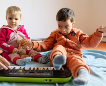 « Nous avons survécu, c’est le principal. Nous sommes contents d’être là », dit Oksana, maman d’Ivan (7 ans) et de Katja (2 ans), assise sur le canapé en cuir bleu de l’espace commun du centre d’hébergement pour réfugiés. Ils vivent désormais tous les quatre dans une chambre du centre d’accueil, jusqu’à ce qu’ils trouvent un appartement adéquat. Car Ivan, qui a le syndrome de Wolf-Hirschhorn et un retard de développement, se déplace en fauteuil roulant. La fuite en voiture a été particulièrement longue et pénible pour Ivan car il était à l’étroit et pouvait à peine bouger, raconte son papa : « Ivan était vite fatigué et il a beaucoup pleuré. Pour le calmer, nous avons chanté avec lui pendant des heures dans la voiture ». Ce qui procure beaucoup de plaisir au petit, c’est la musique. Quand il promène ses mains sur le petit piano, assis sur le lit, il écoute les notes que cela produit et bouge en rythme, comme s’il était en transe. Sa mère espère qu’il pourra bientôt suivre une musicothérapie.